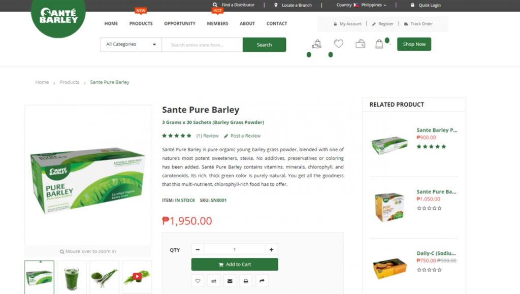 Founded in 2008, Sante Barley is run by a formidable team of leaders backed by a combined marketing experience of 50 years. To give an edge to the multilevel networking company in in a competitive market, we were tasked to create an e-Commerce website.