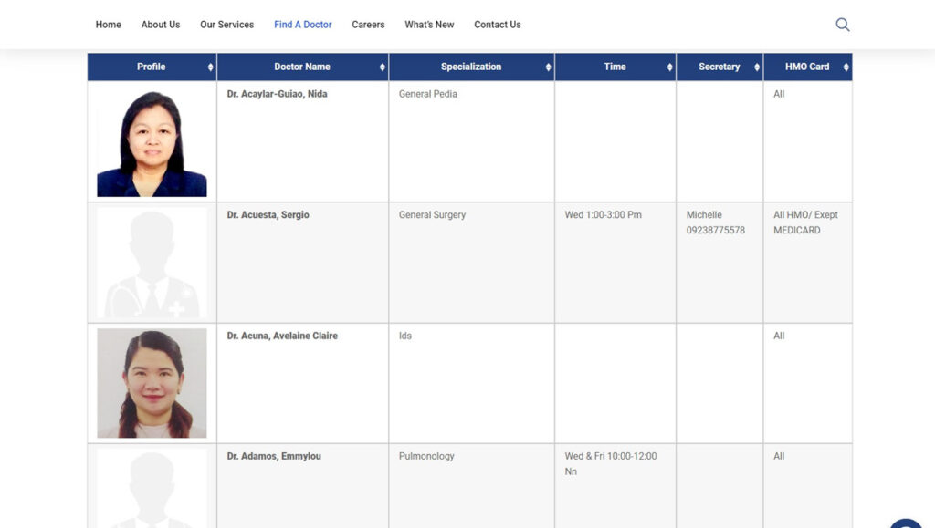 - A Doctors Directory for users to find out the availability of medical professionals.